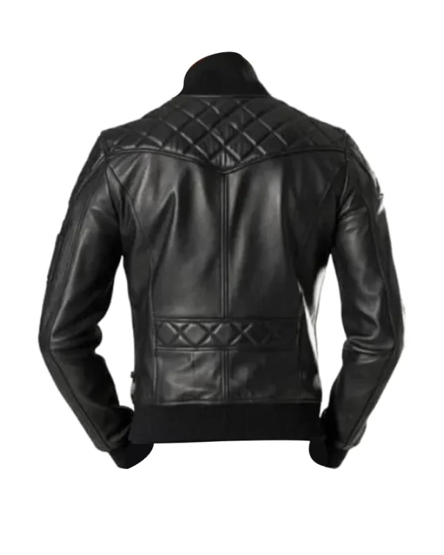 Men’s Casual Signature Diamond Lambskin Leather Jacket-Blue