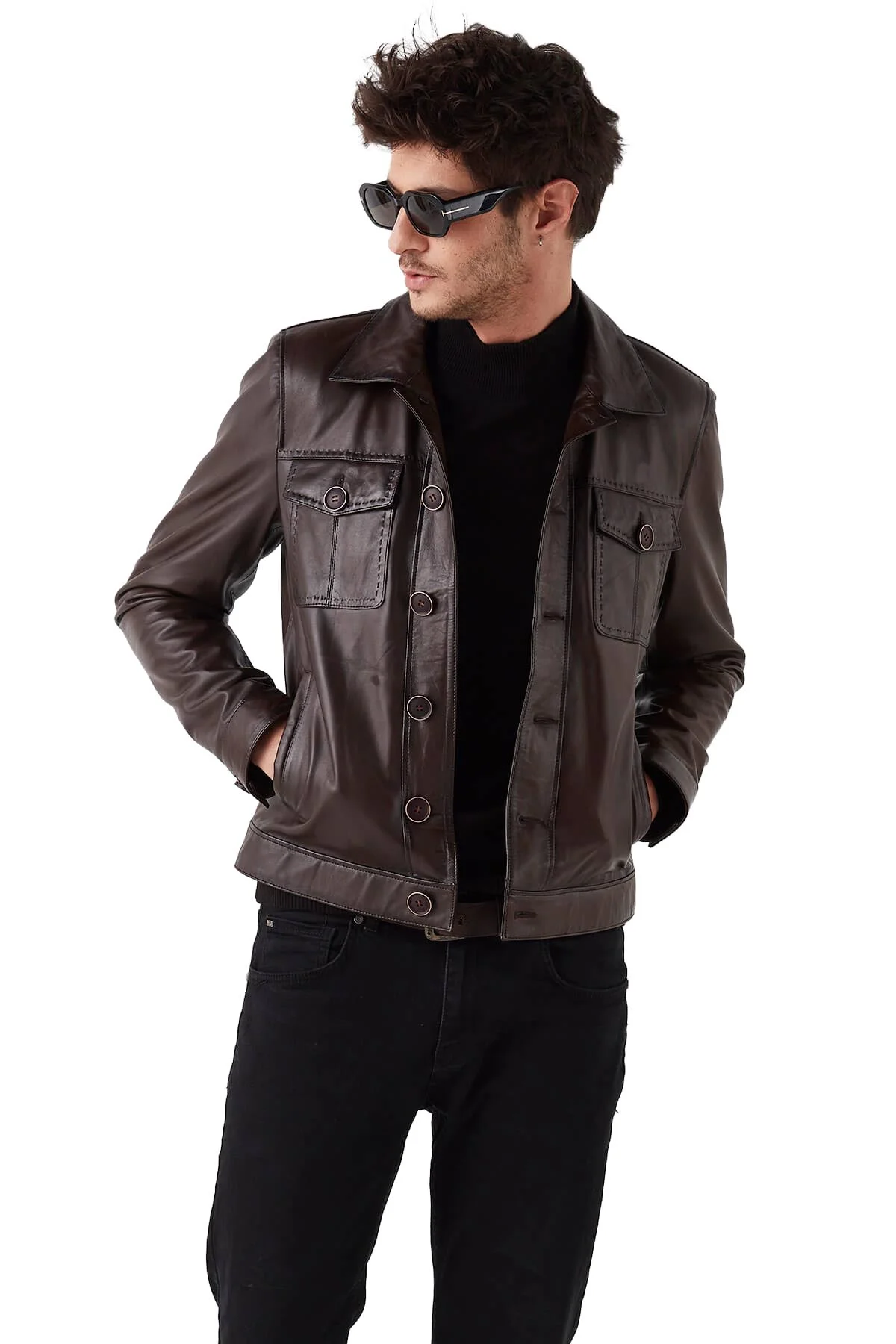Add timeless sophistication to your wardrobe with our Men’s 100% Real Brown Leather Classic Jacket, designed for men who appreciate traditional style combined with premium quality. Crafted from high-grade genuine leather, this jacket offers a smooth, rich texture along with exceptional durability. The warm brown color gives a refined yet rugged appeal, making it a versatile piece for everyday wear.