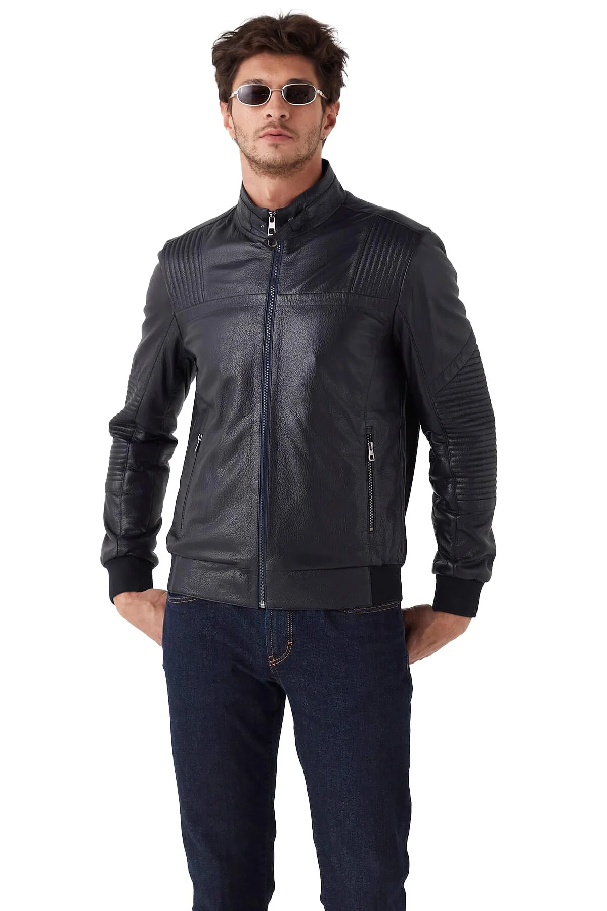 Perfect for casual wear, office outfits, travel, and evening occasions, this navy blue leather jacket pairs effortlessly with jeans, chinos, or tailored trousers. Over time, the genuine leather develops a natural patina, enhancing its character and beauty.