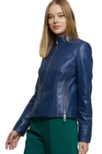 Sleek, sporty, and timeless, the Women’s 100% Real Blue Leather Café Racer Biker Jacket is crafted from 100% genuine leather for a premium feel, long-lasting durability, and superior comfort. The classic café racer design is elevated with a bold blue leather finish, offering a modern twist on iconic motorcycle style.