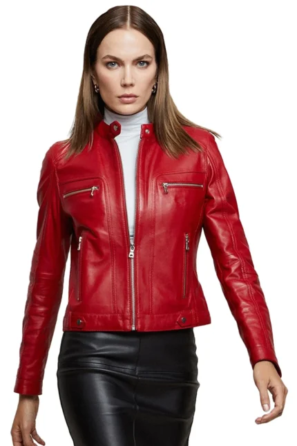 Make a bold and confident style statement with our Women’s 100% Real Red Leather Double Collar Jacket, designed for women who love standout fashion with a touch of sophistication. Crafted from premium quality genuine leather, this jacket offers a rich texture, exceptional durability, and a luxurious feel that only real leather can provide. The striking red color instantly elevates your look, adding confidence and personality to any outfit.